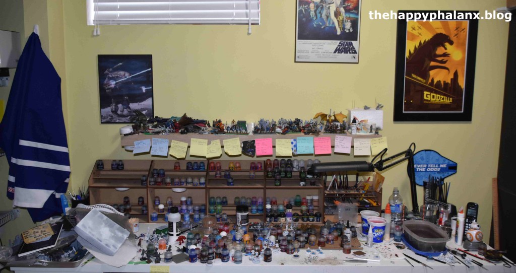 Finally, you will need a place to keep all of your hobby stuff and actually work. I am fortunate to have a spot in the basement where I can spread out my stuff and do some painting whenever I have a few minutes to spare. When I was younger, I would keep a lot of it on a serving tray that I could move out of the way when I had to do actual work. Having a dedicated area with a good light source can really go a long way towards making the hobby more enjoyable, as well as allowing you the opportunity to squeeze in a few minutes of painting here and there without having to get everything out.
